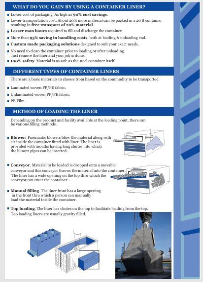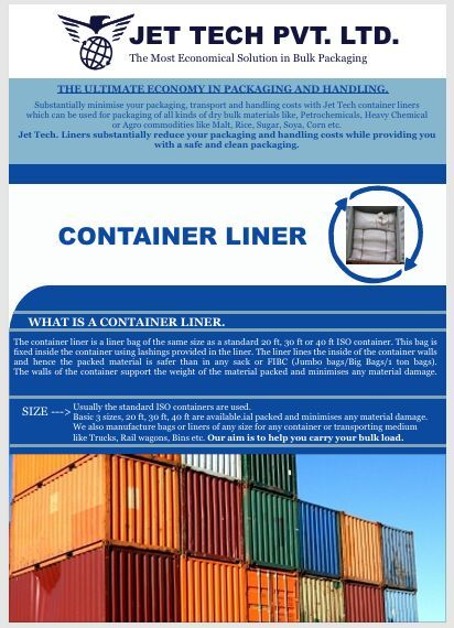 21 Ton Dry Bulk Container Liner technological adeptness has made us the pioneers of offering modern day Bulk Container Liner. Specification: Saves up to 95% including loading and unloading About 20% more material is packed and transported in same 20ft Container Common capacity varies from 21 Ton.
